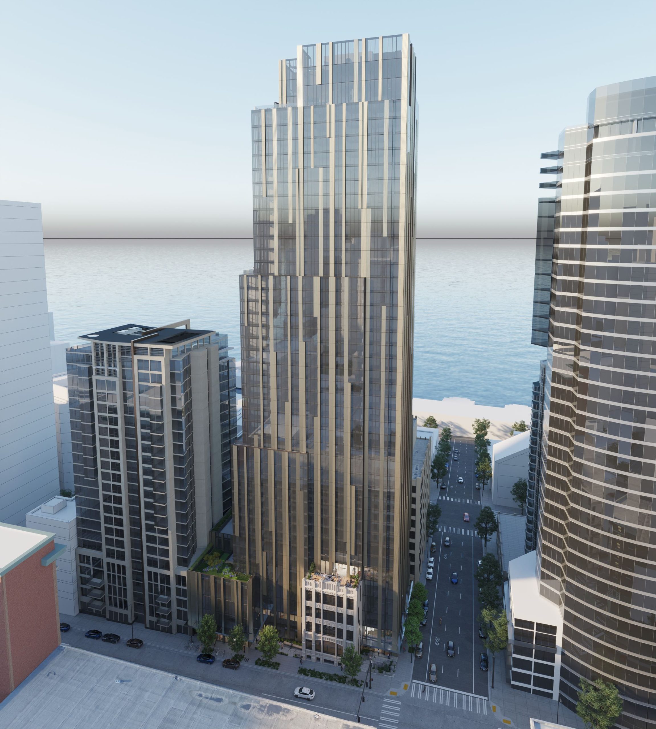 It also places at the centre of this composition the culturally significant 1916 Bebb & Gould building, the Terminal Sales Annex (formerly Puget Sound News), a hinge between Belltown and Downtown Seattle. As a pair, the older facade and the new tower mark this pivot between characteristic neighbourhoods. The concept acknowledges the raw power of the surroundings and existing city contexts, while celebrating the care of craft and refinement.